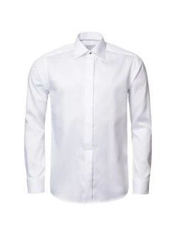 Crafted of premium crease-resistant cotton, Eton’s Diamond Weave dress shirt features a textured diamond weave pattern, tonal top button and front hidden button placket. This shirt is tailored with an evening spread collar, long sleeves and French cuffs.
