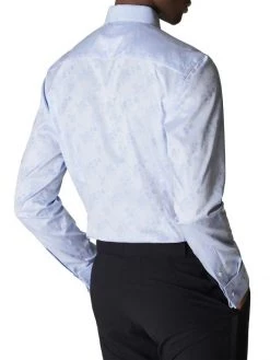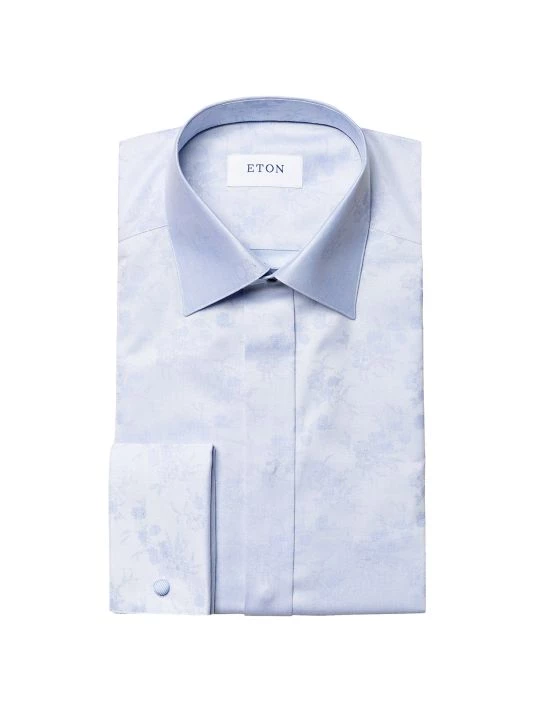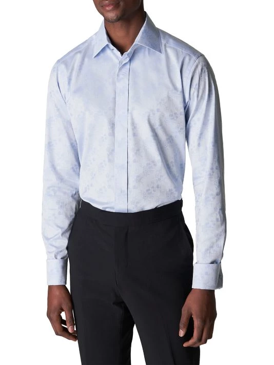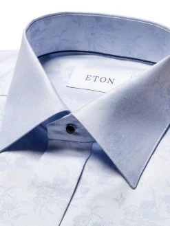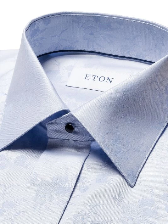 Floral jacquard and a sleek color decorate Eton’s crisp crease-resistant dress shirt.