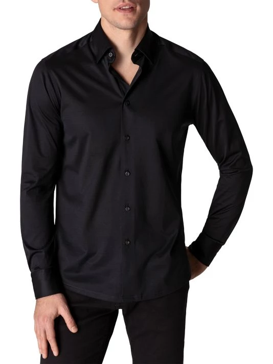 Etonโs button-front shirt is crafted of mercerized cotton jersey. Featuring rounded barrel cuffs and a back shoulder yoke, this shirt is designed with a contemporary fit.