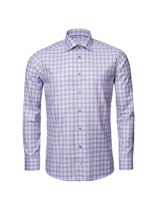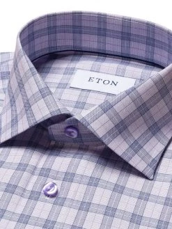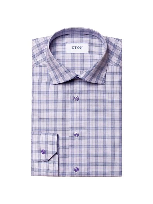 Crafted of high-performing, crease-resistant fabrication, Etonโs classic stretch shirt features darts at the back to tailor the width. Tonal buttons and a classic plaid print enhance this contemporary-fit dress shirt.