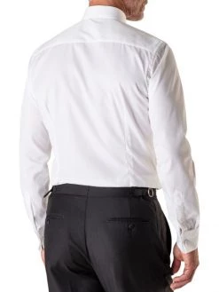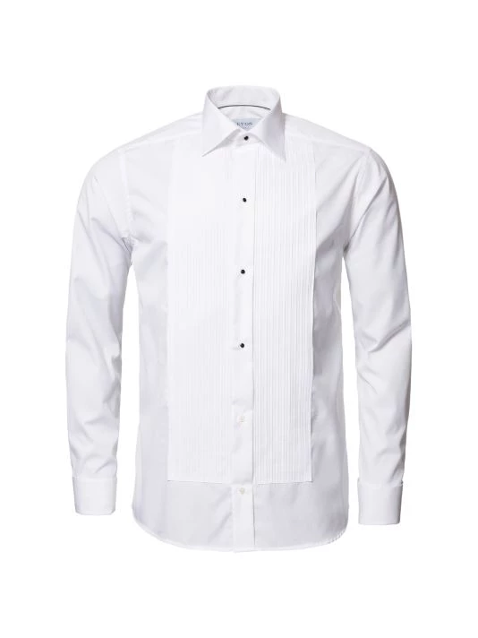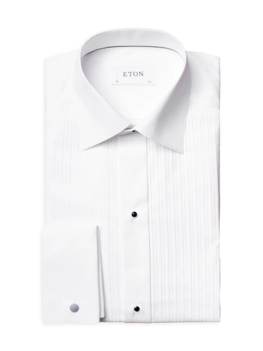 Eton’s pleated-bib formal shirt is crafted of premium cotton and features a removable stud front. Constructed in a contemporary silhouette, this crease-resistant shirt is styled with an evening spread collar, long sleeves and French cuffs.