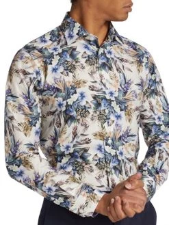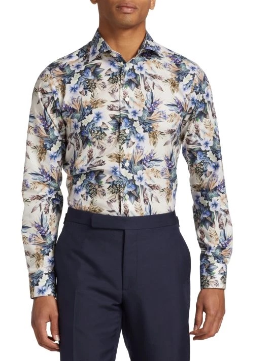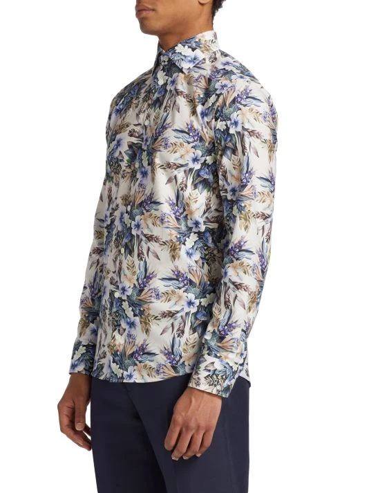 Constructed from light and luxurious twill, Eton’s slim-fit shirt has long sleeves and an allover floral print. It features back darts and high-performance fabric.