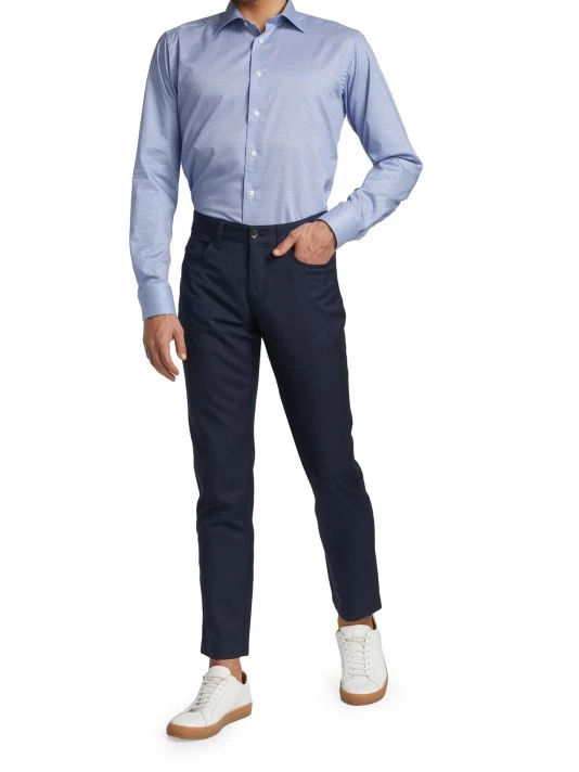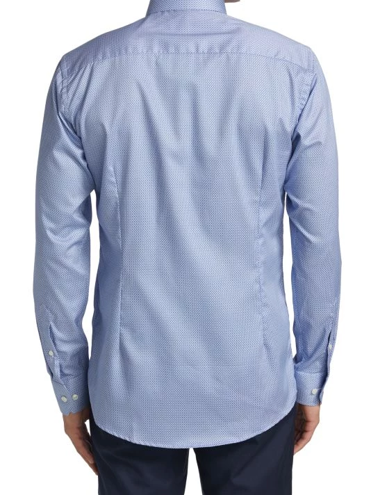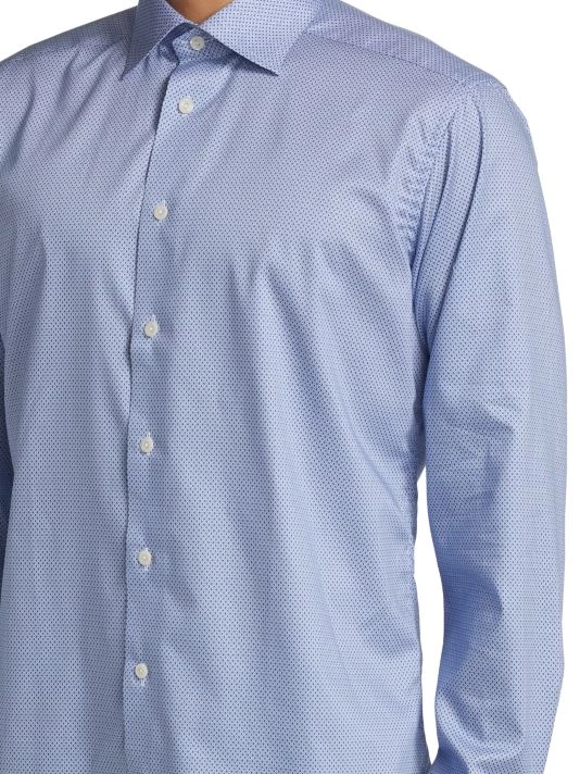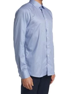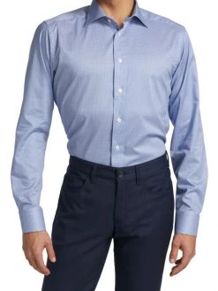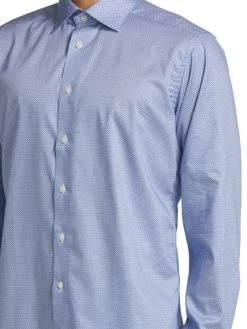 Cut for a slim fit, this button-front shirt features a micro geometric print.