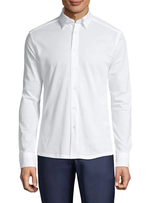 From the Soft Casual Collection. Cut from soft pique cotton, this sport shirt is a casual classic updated with a slim fit.