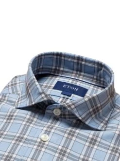 From the Turning to Nature collection. Etonโs Windowpane Plaid shirt is crafted from a durable cotton blend and tailored in a comfortable slim-fit.